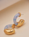Candongas Ópalo con decoración en resina azul hielo que capturan la luz como cristales congelados. Cada par brilla con ese toque translúcido y que evoca invierno eterno. Perfectas para quien ama los detalles delicados y los colores que hipnotizan. Lleva la magia del hielo en tus orejas y deja que todos noten ese brillo especial que solo tú tienes.