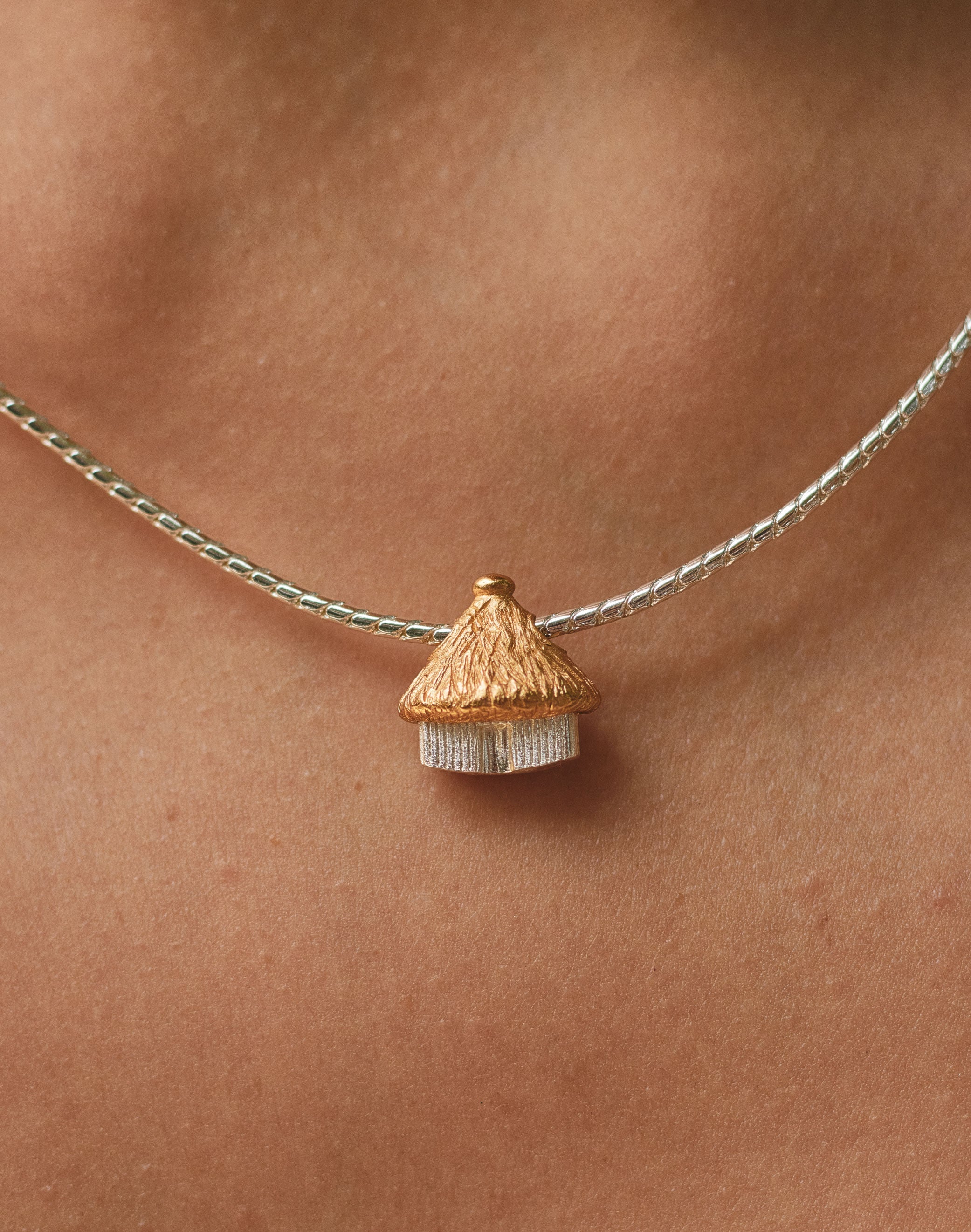 Inspirados en los caminos sagrados que recorren las montañas de la Sierra Nevada, nuestros collares son amuletos modernos que unen diseño, historia y naturaleza. Para quienes saben que el dorado y el plateado juntos, van perfectamente y están buscando un amuleto para todos los días, esta réplica mini de la casa kogui tradicional, será la favorita.