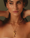 Para quienes prefieren el balance entre lo extra y lo sutil, pero siempre están dispuestas a tomar riesgos en la moda. Este set de collares mezcla una secuencia de dijes en forma de caracolas en el choker y un collar complementario donde el protagonista es el caballito de mar, con un alto nivel de detalle.