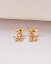 Aretes adorables con forma de chihuahua, combinando cristales de vidrio y resina epóxica sobre un baño de oro semibrillante. Ideales para añadir un toque juguetón y luminoso a tu estilo.