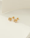 Descubre la elegancia y sofisticación de estos aretes en plata de ley 925. El dorado sutil y la forma de abeja los hacen únicos, mientras que el zircón clear en el centro los hace deslumbrantes. Disfruta de la exclusividad y el brillo que solo estos aretes pueden ofrecerte.