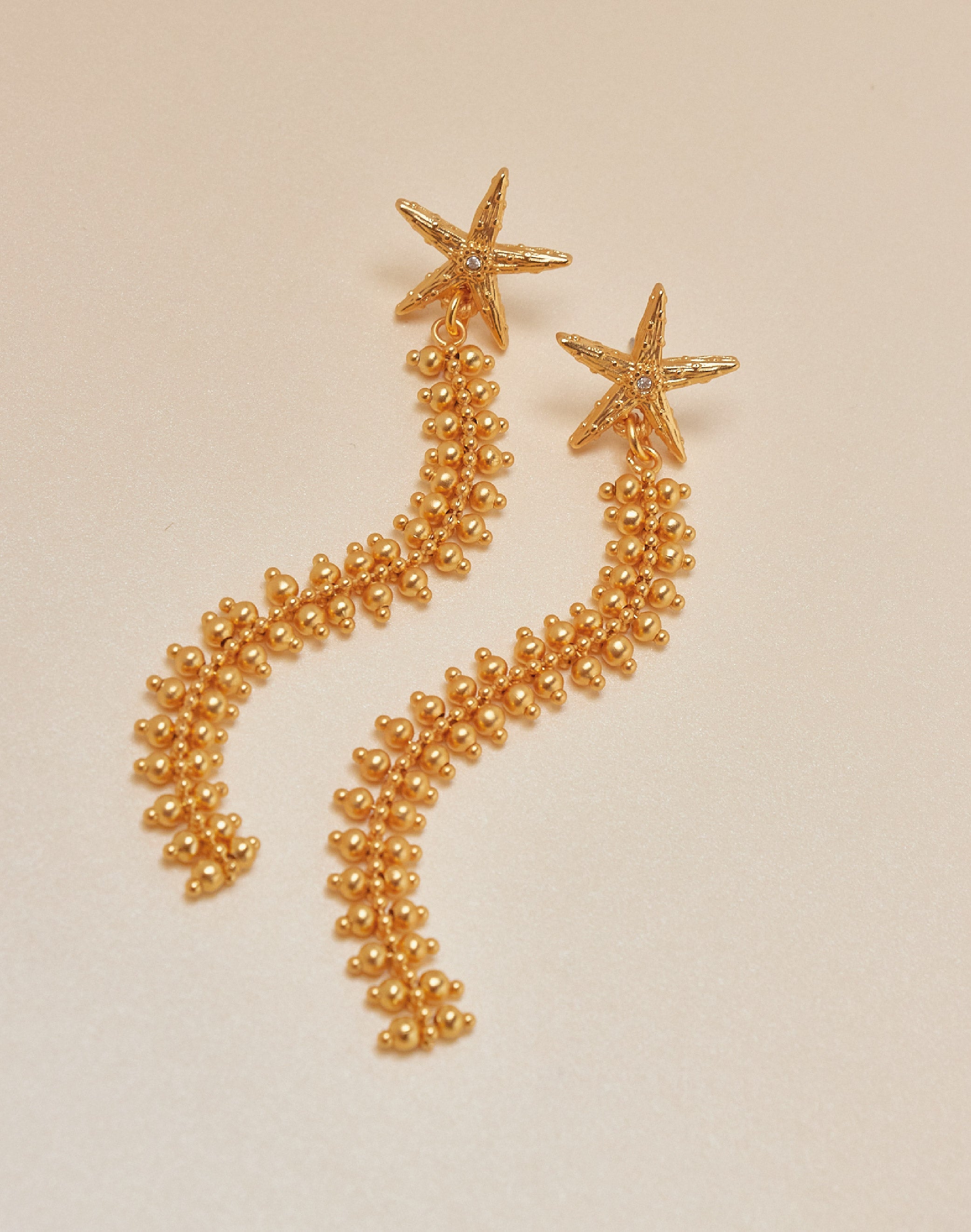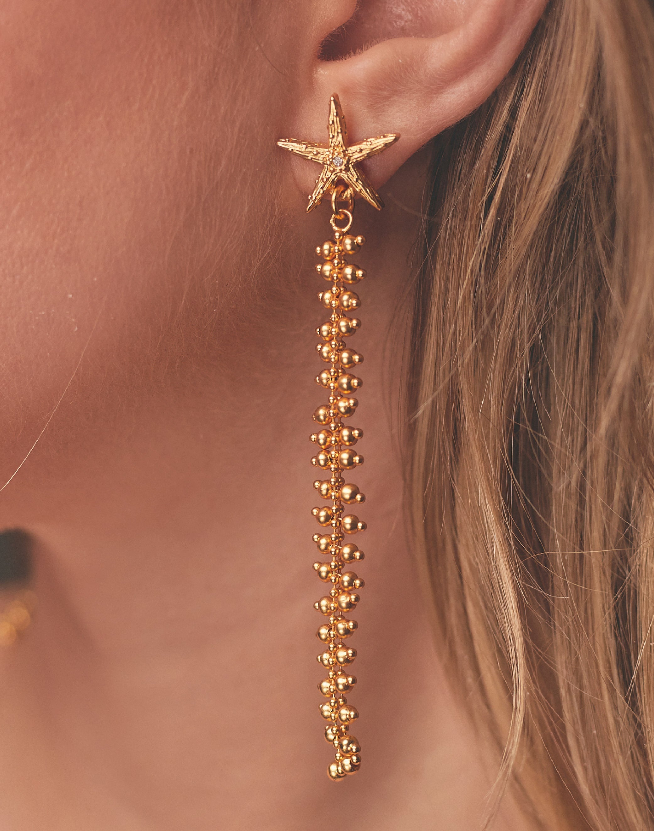 Brilla con estos pendientes de estrella en oro o plata, diseñados con una cadena única que cae suavemente. Perfectos para quienes buscan un toque de magia en su look diario,...