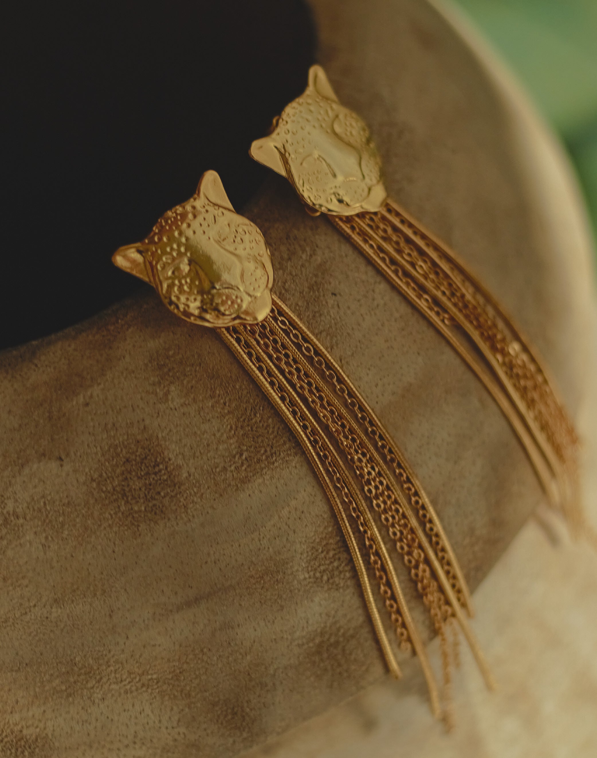 Estos Pendientes Tributo combinan la fuerza y el misterio de la cabeza de jaguar con una caída de cadenas que les da movimiento y estilo único. Perfectos para quienes buscan...