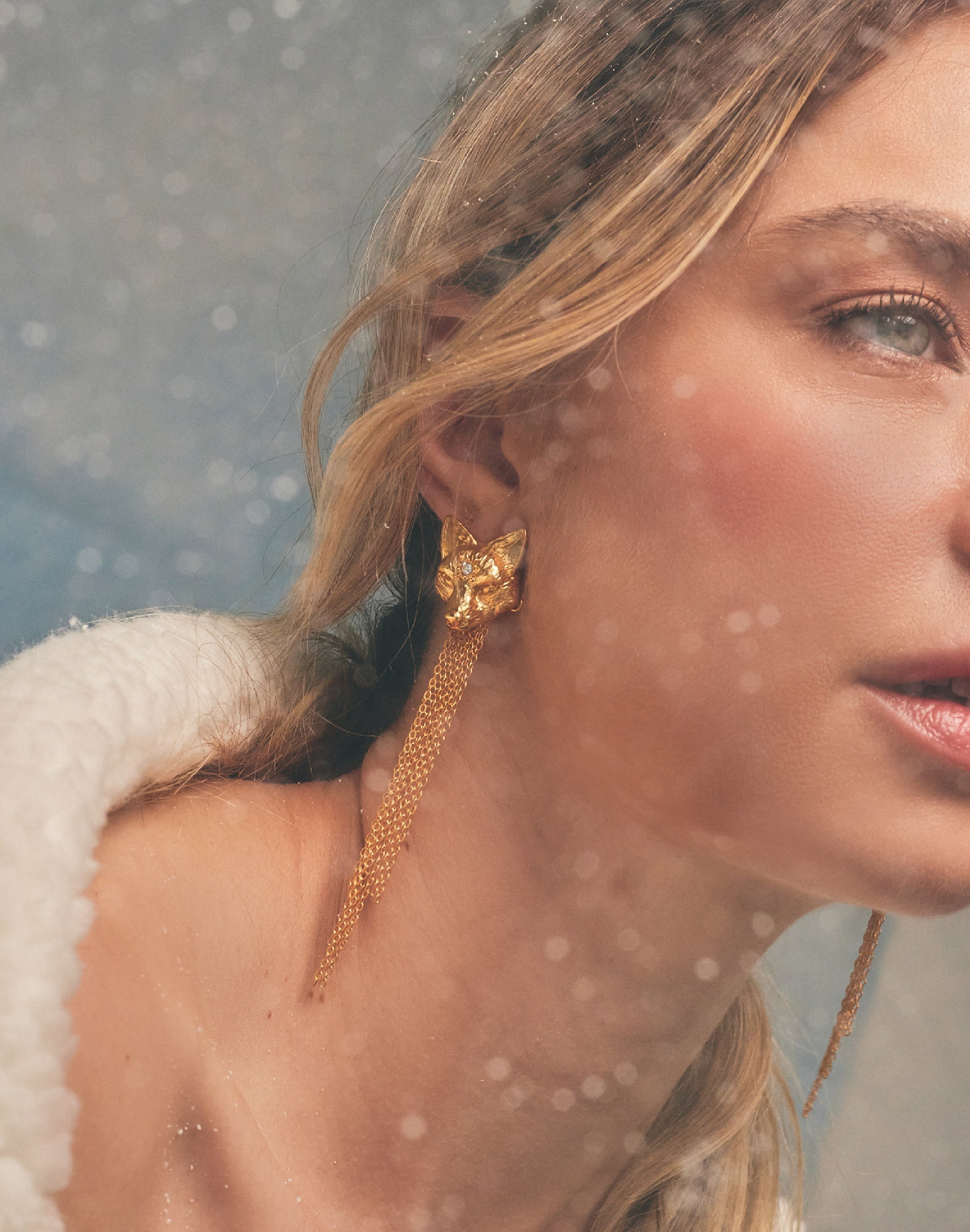Pendientes Wolf Atrévete a brillar con estos pendientes que traen autenticidad tu look. Una cara de lobo cuidadosamente detallada con cadenas que cuelgan, creando un efecto dinámico y cautivador. Para quienes saben que los mejores accesorios son aquellos que cuentan una historia.