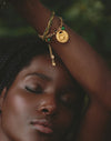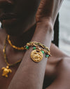 Set de dos pulseras inspirado en los elementos del Pacífico colombiano. Combina una pulsera tejida en hilo encerado y una pulsera con medalla de tortuga, integradas con cadena y baño en Oro 24k. El uso de piedras naturales aporta textura y contraste, logrando un diseño versátil y fácil de combinar.