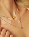 Enamórate de nuestro Set de 3 Collares Amour Amour. Estos collares son perfectos para usar juntos o por separado, agregando un toque de amor a cualquier atuendo. Dos de los collares tienen un dije de corazón, uno en oro y otro en plata, mientras que el último mezcla ambas para un estilo único. ¡Haz que tu amor brille con este set de collares!