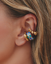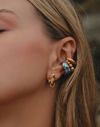 Este set incluye tres earcuffs en aleación de metales bañada en oro semibrillante con cristales de vidrio y resina epóxica. Perfectos para sumar textura y brillo a tus combinaciones de oreja.